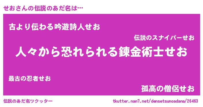 | ヒーロー風カッコイイあだ名 | 『友情の使者せお』『最強戦士セオ』 |