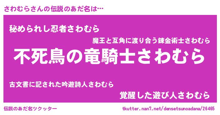 | ファンタジー風あだ名 | 『カークサワラー』『サワフェル』 |