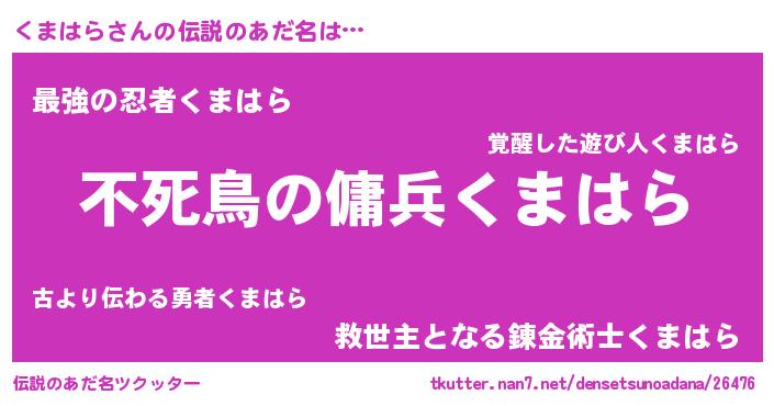 | ヒーロー風カッコイイあだ名 | 『スーパークマハラ』『幻影騎士クマ』 |