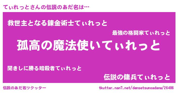 | ヒーロー風カッコイイあだ名 | 『黄金騎士ティ』『正義の使者てぃれっと』 |