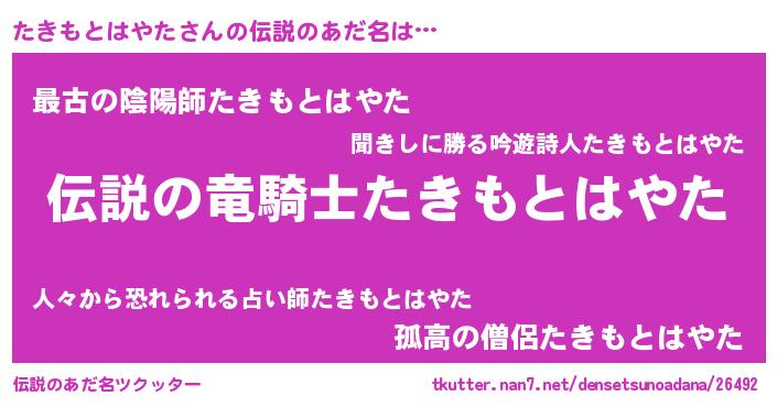 | 胡散臭い通販商品みたいなあだ名 | 『必ず成功するブレスレット…その名も「たきもとはやた」』 |