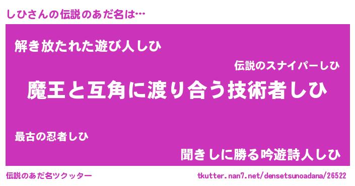 | ヒーロー風カッコイイあだ名 | 『愛の使者しひ』『魔戒騎士シヒ』 |