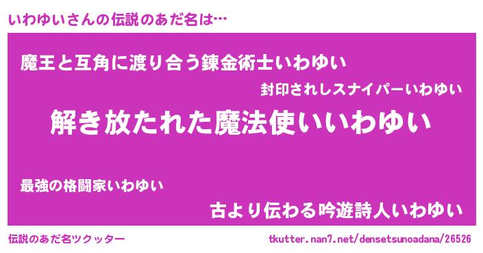 | ヘコむあだ名 | 『いわを』『いわゆい(遠い目)』 |