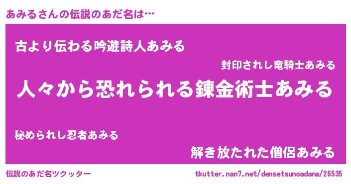 | ヒーロー風カッコイイあだ名 | 『正義の使者あみる』『ネオアミル』 |