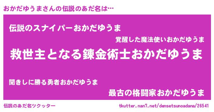 | 男性向けラノベタイトル風あだ名 | 『ノーゲーム・ノーオカダユウマ』 |