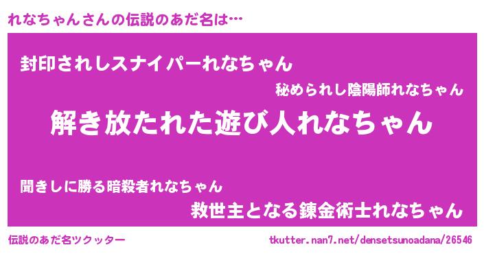 | 男性向けラノベタイトル風あだ名 | 『れなちゃんに滅ぼされるだけの簡単なお仕事です』 |