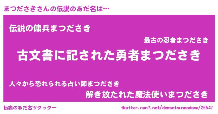 | 意味不明あだ名 | 『住所不定無職まつださき(89歳)』 |