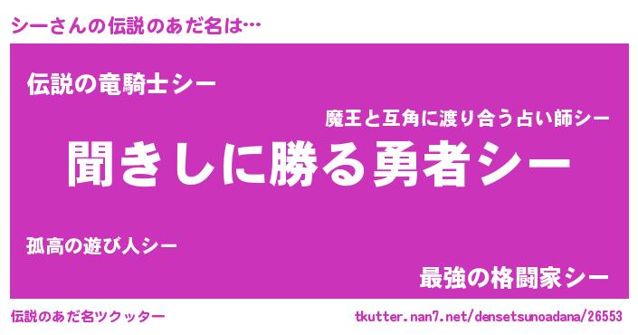 | 男性向けラノベタイトル風あだ名 | 『シーという概念が存在しない退屈な世界 』 |