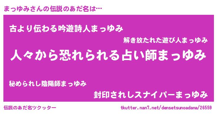 | ヒーロー風カッコイイあだ名 | 『正義の使者まっゆみ』『ネオマッユミ』 |