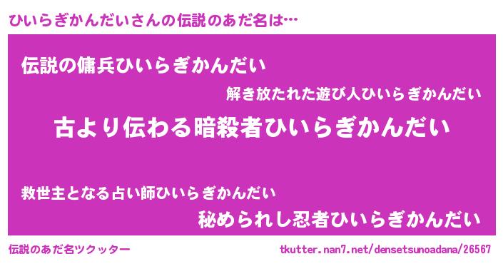 | ヒーロー風カッコイイあだ名 | 『仮面ヒイダー』『ネオヒイラギカンダイ』 |