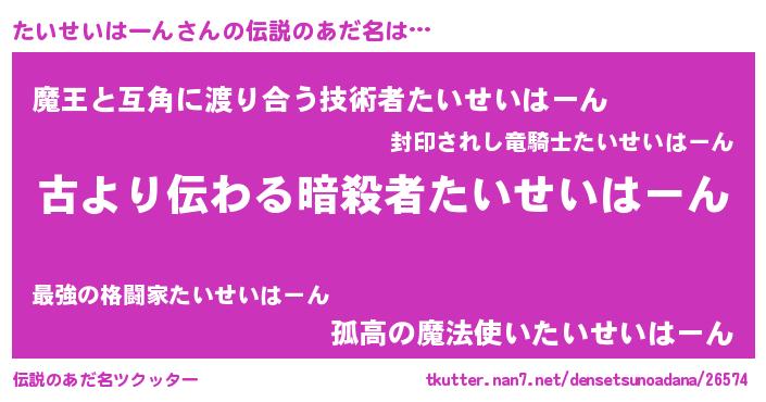 | 意味不明あだ名 | 『永久保存たいせいはーん』 |