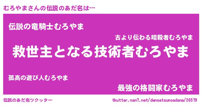 | 男性向けラノベタイトル風あだ名 | 『この素晴らしい世界にむろやまを!』 |