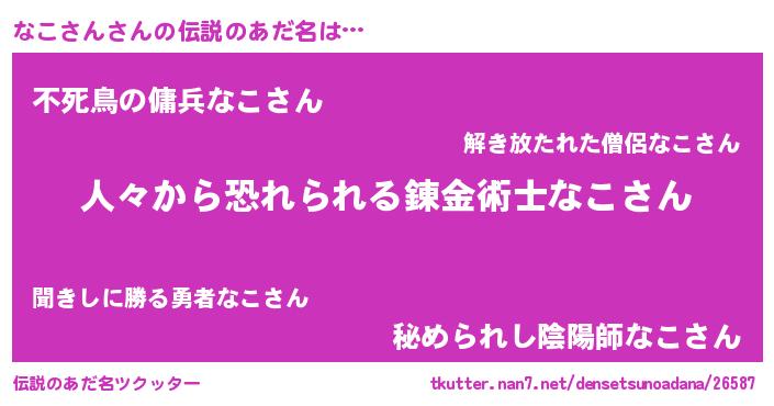 | 男性向けラノベタイトル風あだ名 | 『おまえをオタクにしてやるから、俺をなこさんにしてくれ! 』 |
