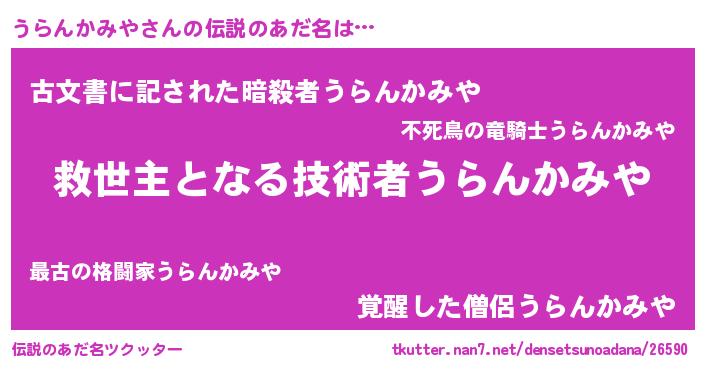 | 男性向けラノベタイトル風あだ名 | 『ノーゲーム・ノーウランカミヤ』 |