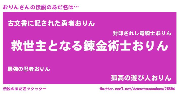 | ヒーロー風カッコイイあだ名 | 『慈愛の使者おりん』『ネオオリン』 |