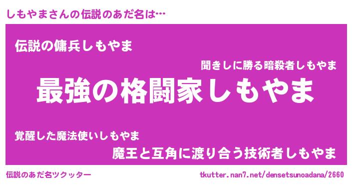 | ヒーロー風カッコイイあだ名 | 『ウルトラしもやまマン』『仮面シモダー』 |