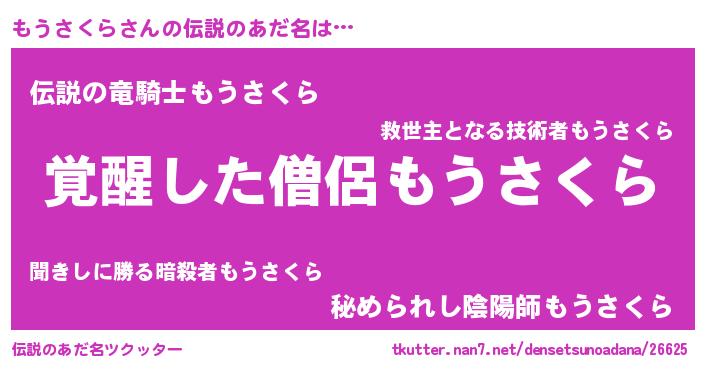 | 意味不明あだ名 | 『とにかく怪しいもうさくら』 |