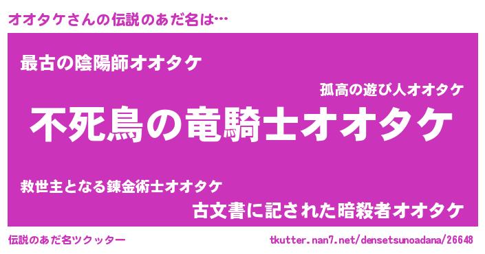 | 女子向けラノベタイトル風あだ名 | 『オオタケ姫と円卓の騎士』 |