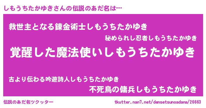 | ポケモン風あだ名 | 『ヒシモウチタカユキ』『シックウザ』 |