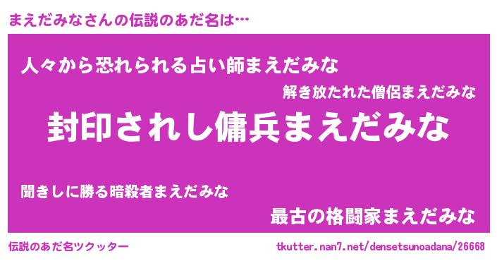 | ヒーロー風カッコイイあだ名 | 『スーパーマエダミナ』『仮面マエダー』 |