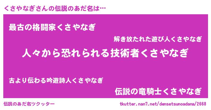 | ヒーロー風カッコイイあだ名 | 『正義の使者くさやなぎ』『仮面クサダー』 |
