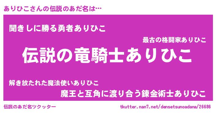 | 意味不明あだ名 | 『自称ありひこ』『ペロリンありひこ』 |