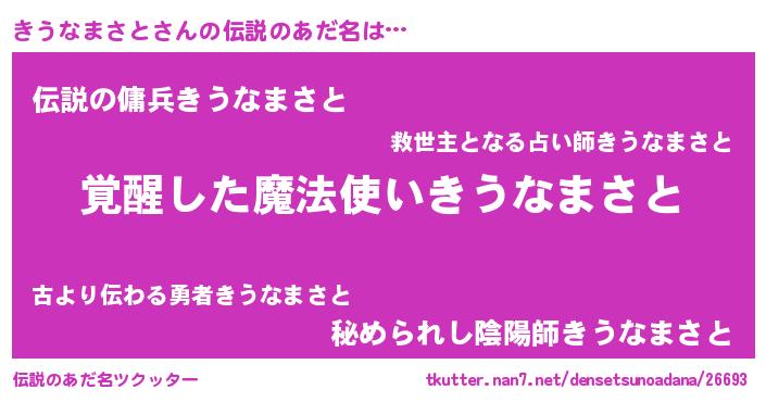 | 意味不明あだ名 | 『自称きうなまさと』 |