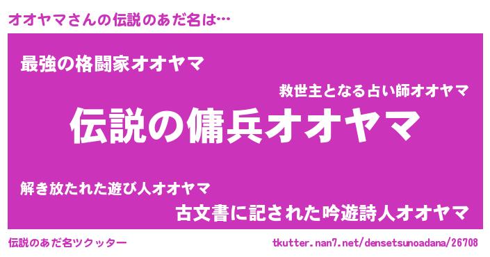 | 胡散臭い通販商品みたいなあだ名 | 『必ず成功する水晶球…その名も「オオヤマ」』 |