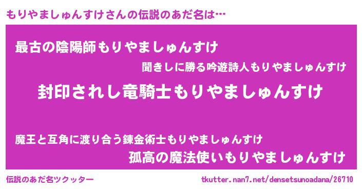 | 男性向けラノベタイトル風あだ名 | 『もりやましゅんすけに滅ぼされるだけの簡単なお仕事です』 |