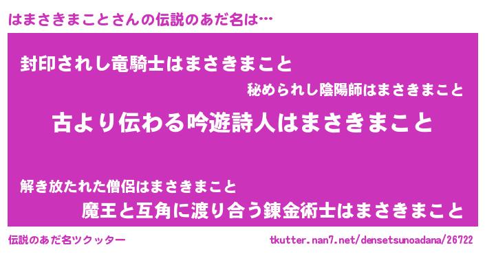 | ヒーロー風カッコイイあだ名 | 『ネオハマサキマコト』『仮面ハマダー』 |