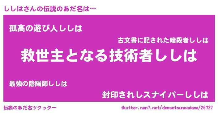 ヒーロー風カッコイイあだ名 | 『天空の使者ししは』『暗黒騎士シシ』 |