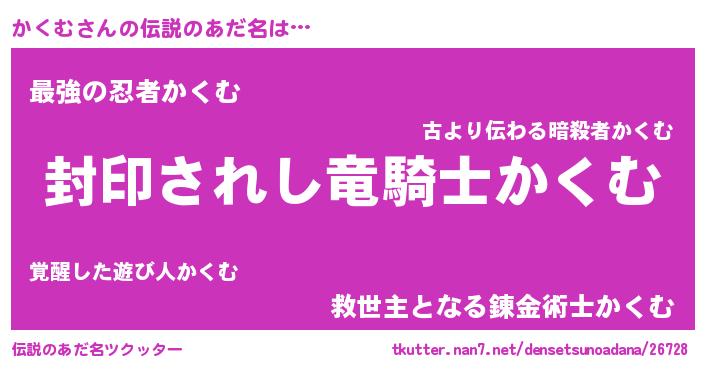 | ヒーロー風カッコイイあだ名 | 『スーパーカクム』『ウルトラかくむマン』 |