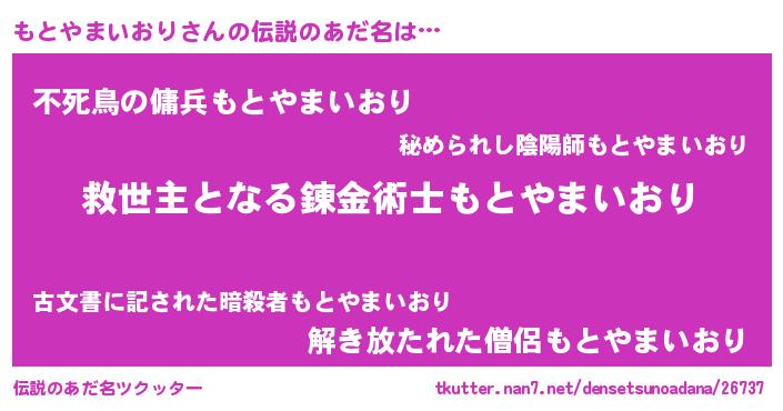 | 意味不明あだ名 | 『眠気覚ましガムもとやまいおり味』 |