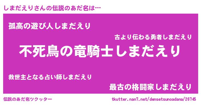 | ファンタジー風あだ名 | 『シマフェル』『ヴァルシマーナ』 |