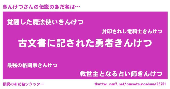 | 意味不明あだ名 | 『永久保存きんけつ』『自称きんけつ』 |