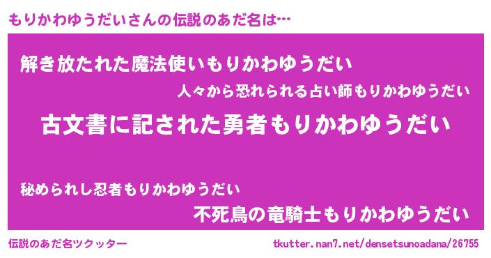 もりかわゆうだいさんの伝説のあだ名をツクッター!