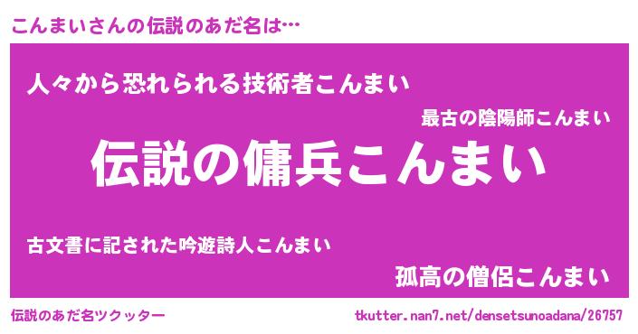 | 女子向けラノベタイトル風あだ名 | 『こんまいが死なない童話 林檎のこんまいの診療簿』 |