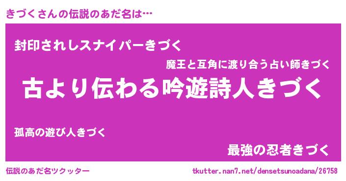 | ヒーロー風カッコイイあだ名 | 『サイバー戦士キヅク』『仮面キヅダー』 |