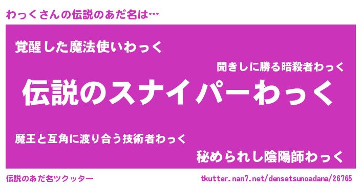 | 胡散臭い通販商品みたいなあだ名 | 『必ず成功する霊験あらたかなお札…その名も「わっく」』 |