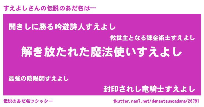 | 意味不明あだ名 | 『たけのこ科すえよし属』『自称すえよし』 |