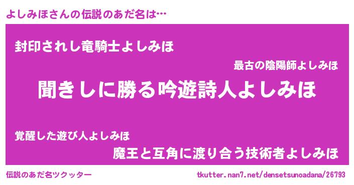 | 意味不明あだ名 | 『永久保存よしみほ』『ペロリンよしみほ』 |