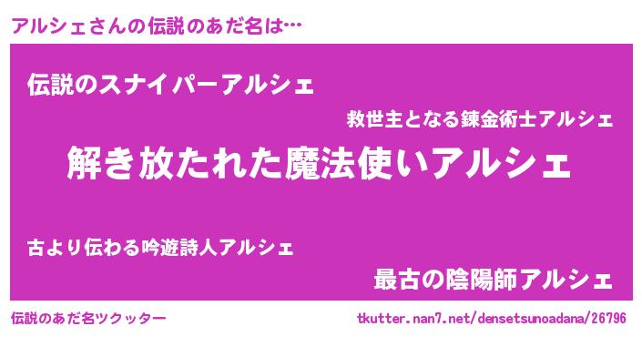 | ヒーロー風カッコイイあだ名 | 『幻影騎士アル』『スーパーアルシェ』 |