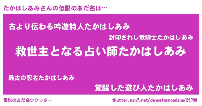 | 意味不明あだ名 | 『自称たかはしあみ』 |