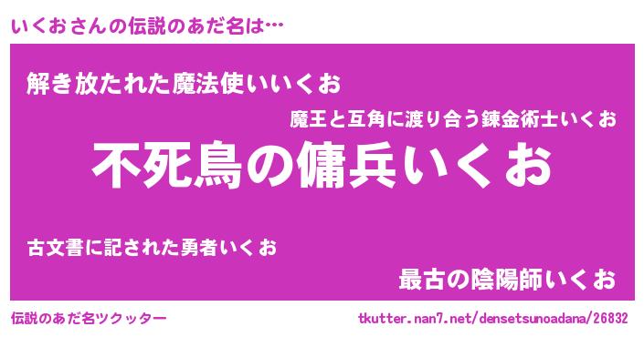 | ヒーロー風カッコイイあだ名 | 『スーパーイクオ』『魔戒騎士イク』 |