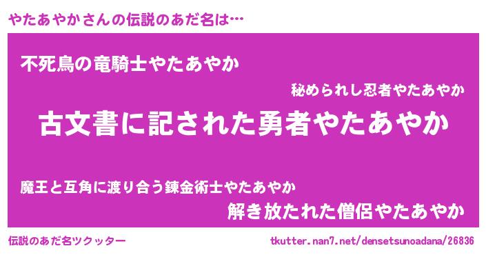 | 意味不明あだ名 | 『永久保存やたあやか』『自称やたあやか』 |