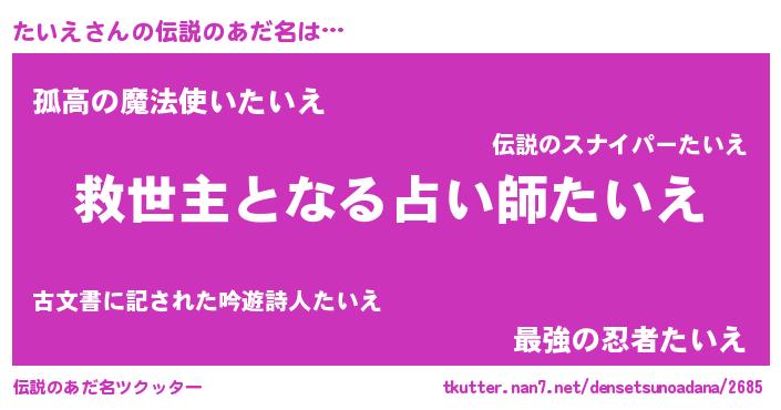 | ヒーロー風カッコイイあだ名 | 『慈愛の使者たいえ』『暗黒騎士タイ』 |