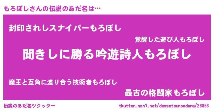 | 男性向けラノベタイトル風あだ名 | 『もろぼしという概念が存在しない退屈な世界 』 |