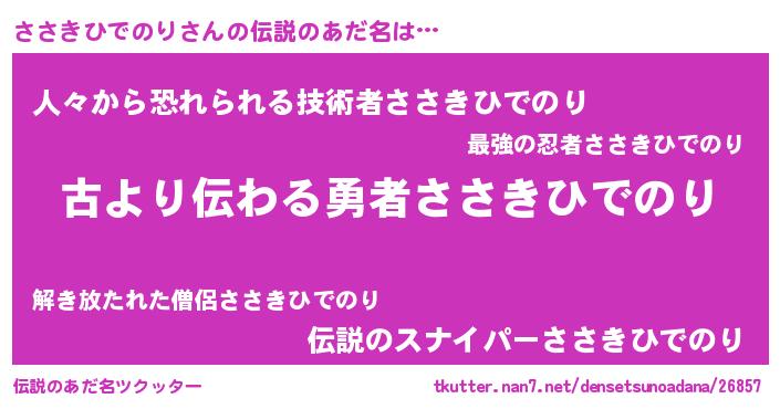 | ヒーロー風カッコイイあだ名 | 『ネオササキヒデノリ』『仮面ササダー』 |