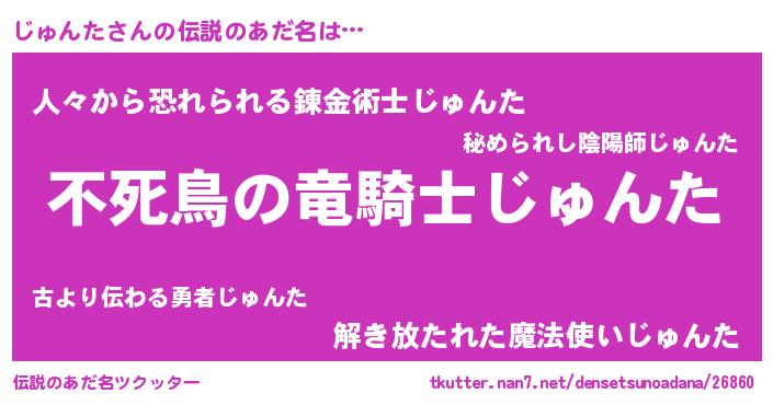 | 女子向けラノベタイトル風あだ名 | 『じゅんた姫と円卓の騎士』 |