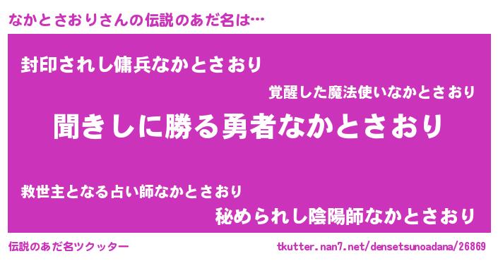 | 男性向けラノベタイトル風あだ名 | 『なかとさおりという概念が存在しない退屈な世界 』 |